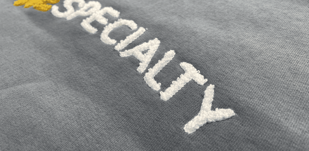 La broderie bouclette est une technique de marquage textile qui se distingue par son aspect en relief et son rendu texturé. Contrairement à une broderie classique, le fil n’est pas tendu de manière lisse : il forme de petites boucles qui créent du volume et un effet visuel unique.